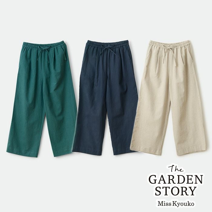大き目のシルエットと肌当たりの良い綿麻素材が、上質なリラックス感を与えてくれるガーデンストーリーらしいパンツです。