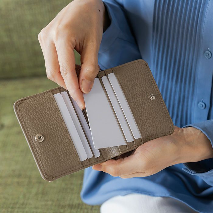 柔らかなイタリアンレザーを使用したコンパクトな二つ折りウォレット