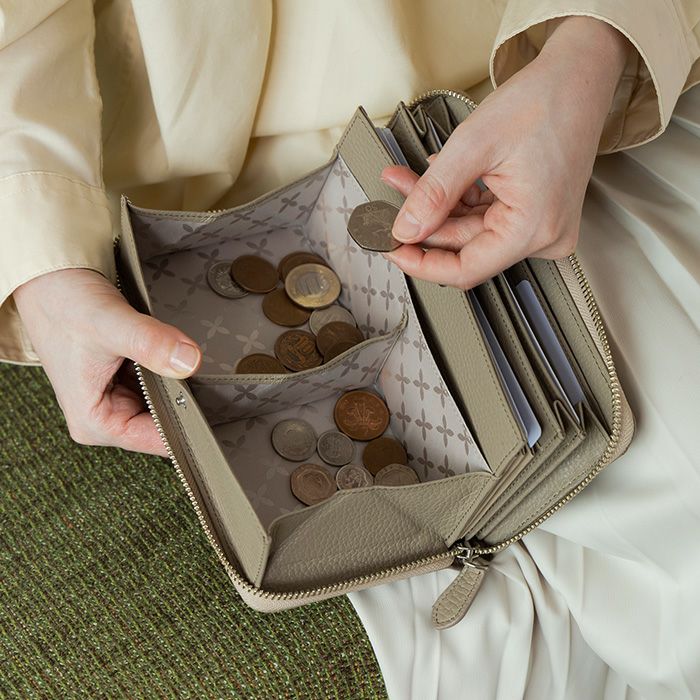 柔らかなイタリアンレザーを使用した小銭が分けられる長財布