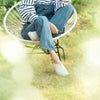 履き口のかかと側に柔らかなクッションを内蔵し、優しい足当たりに仕上げました。履き口に切り込みを入れることで、深履きでホールド感はあるのに、足入れしやすく圧迫感を感じにくい設計です。