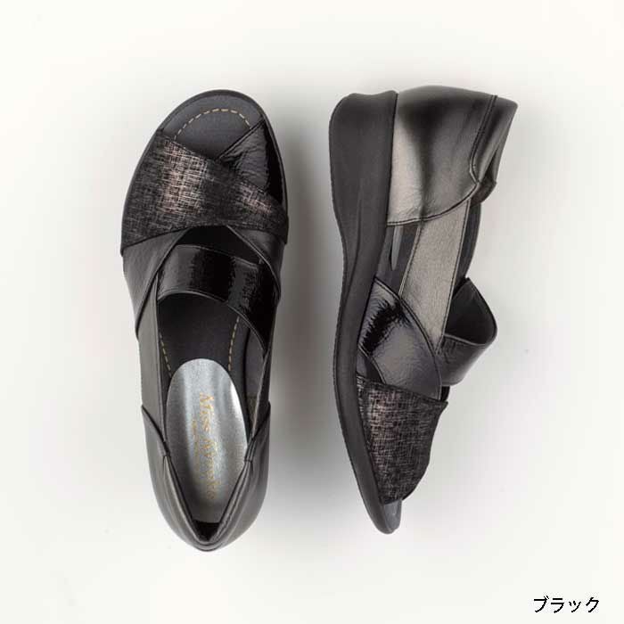 【109601】軽量コンビフラットシューズ 4E Miss Kyouko ブラック/S