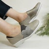 大きな花モチーフが可愛らしい片足180gの軽量スリッポン