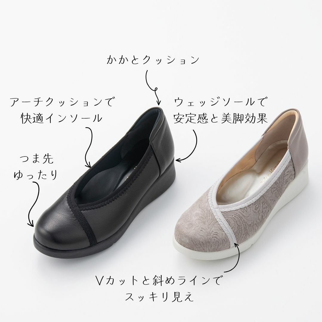 V字のラインが甲を美しく見せ、快適な履き心地のパンプス♪