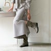 ミドル丈です。履き口は広め、前面はドレープが施されたゆったりしたデザインです。ふくらはぎの締めつけ感が苦手な方や、むくみやすい方にお薦めです。