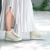 レースアップの紐がゴムなので、ファスナー無しでもさっと履いていただけます。