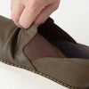 両サイドのゴムがグイっと伸びるので、着脱しやすく、歩行時も足の動きに合わせて、しっかりフィット。