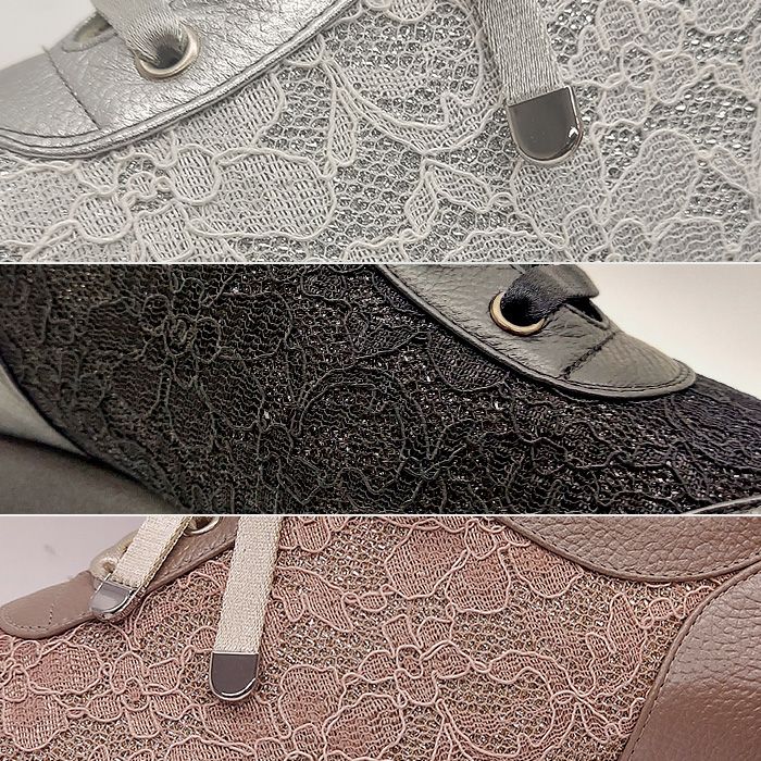 華やかなラメ入り花柄チュールレースをあしらった、エレガンスが薫り立つスニーカー。