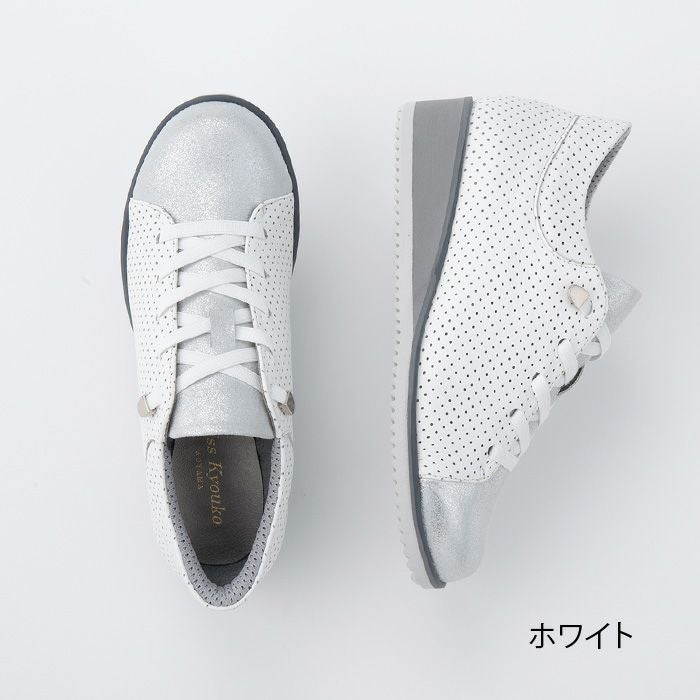 快適レースアップスニーカー 【104103】軽量パンチングスニーカー 4E Miss Kyouko