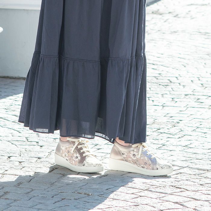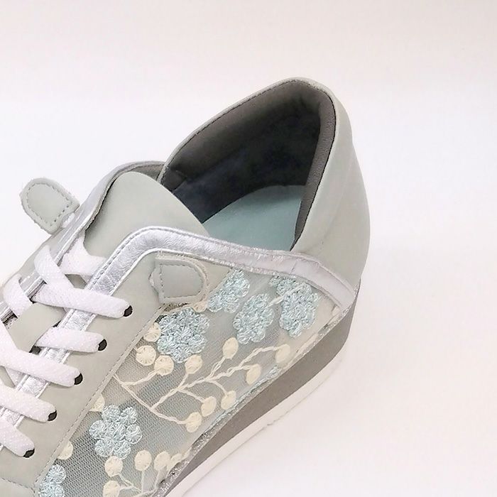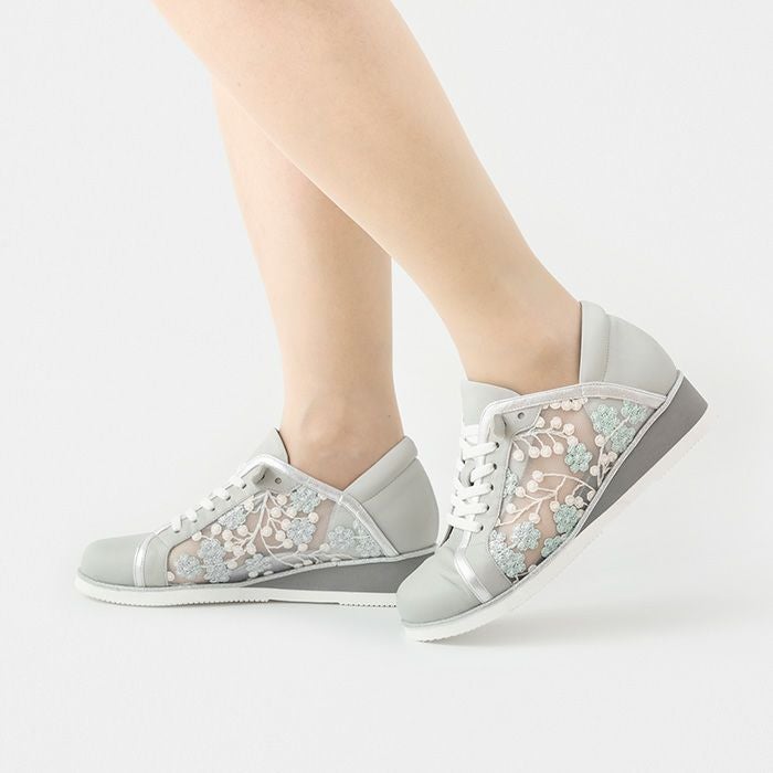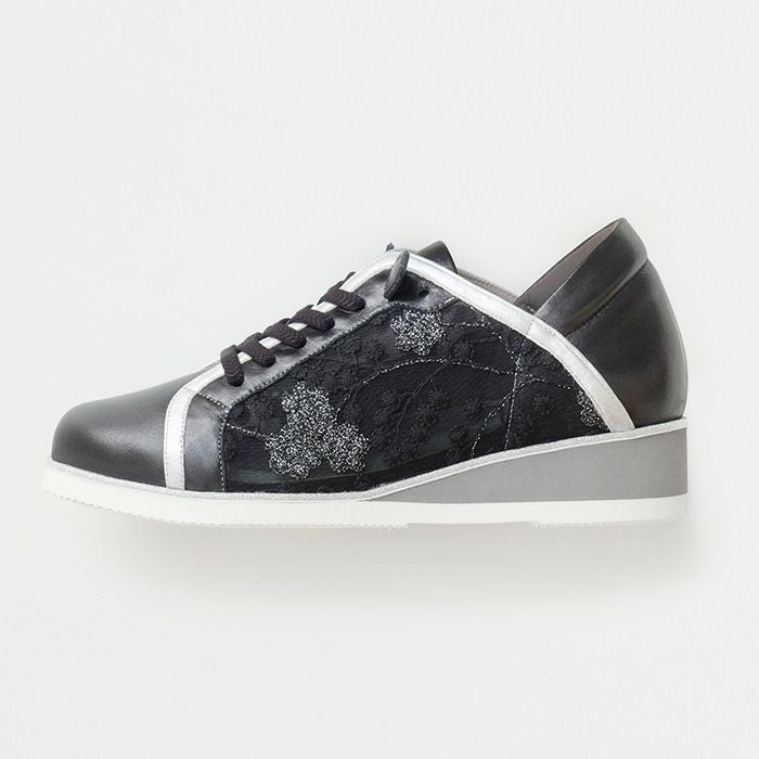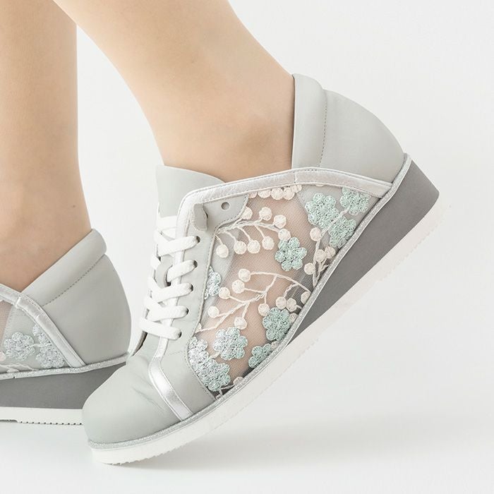 華やかなラメ入り花柄チュールレースをあしらった、エレガンスが薫り立つスニーカー。