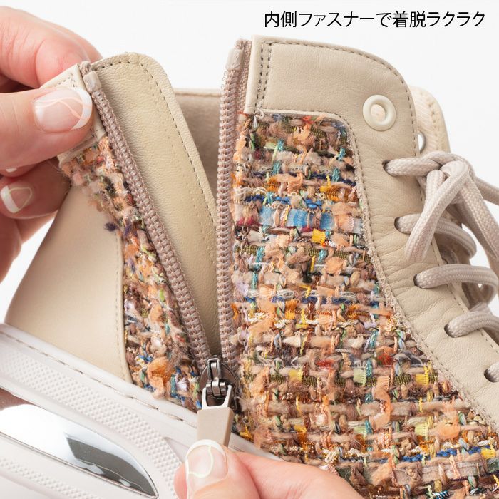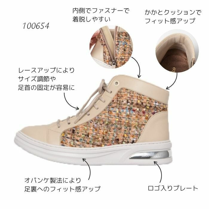 【100654】ツイードハイカットスニーカー 4E Miss Kyouko