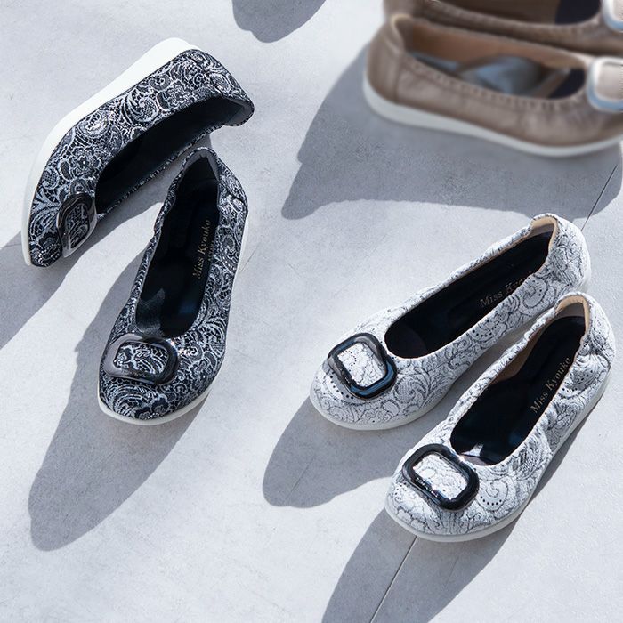 セール【109606】軽量型押しコンビフラットシューズ 4E Miss Kyouko